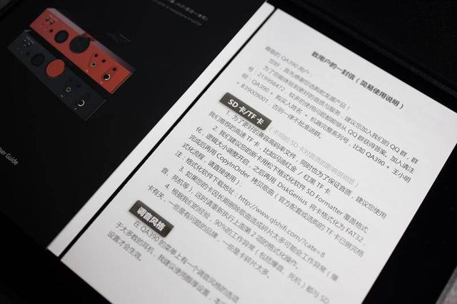 包裝里有一張簡易說明,最重要的還是告訴用戶對于SD卡的選擇問題。SD卡的聲音玄學(xué)由來已久,索尼就出過一款天價SD卡,反正我也沒聽過,鬼知道有沒有用......標配里已經(jīng)自帶一張SanDisk 卡,甚至還給了個讀卡器,用戶不用自己另外配,真正到手即用!