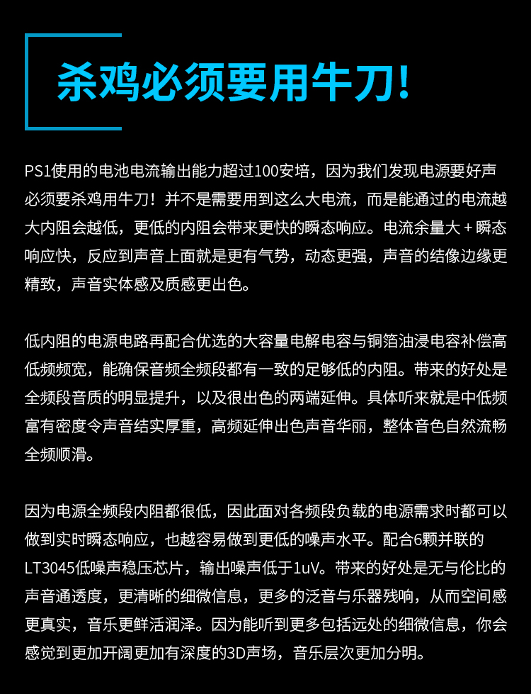 MC01平衡輸出使用兩顆大功率的獨(dú)立耳放芯片,4.4輸出高達(dá)260mW@32歐,這是比很多旗艦便攜HiFi播放器更高的輸出功率??梢赃m配更多難推的耳機(jī)。