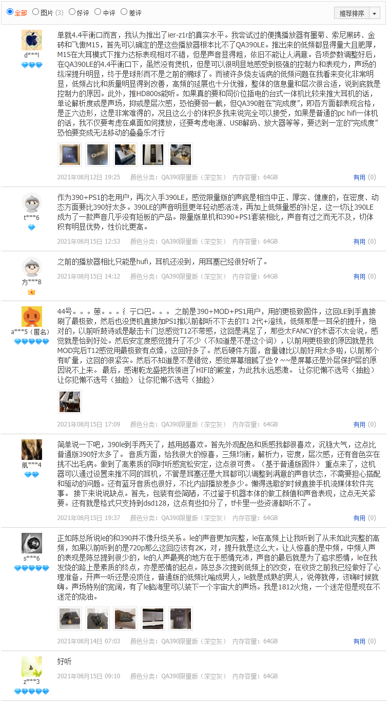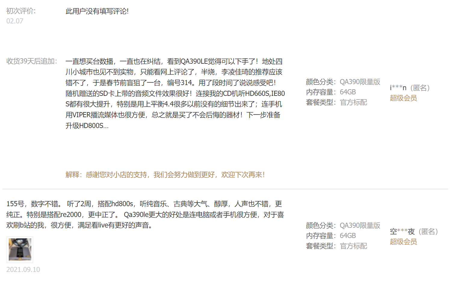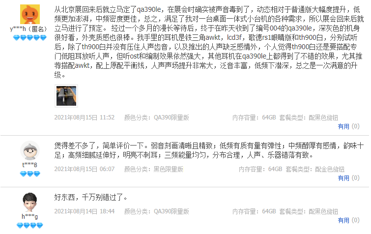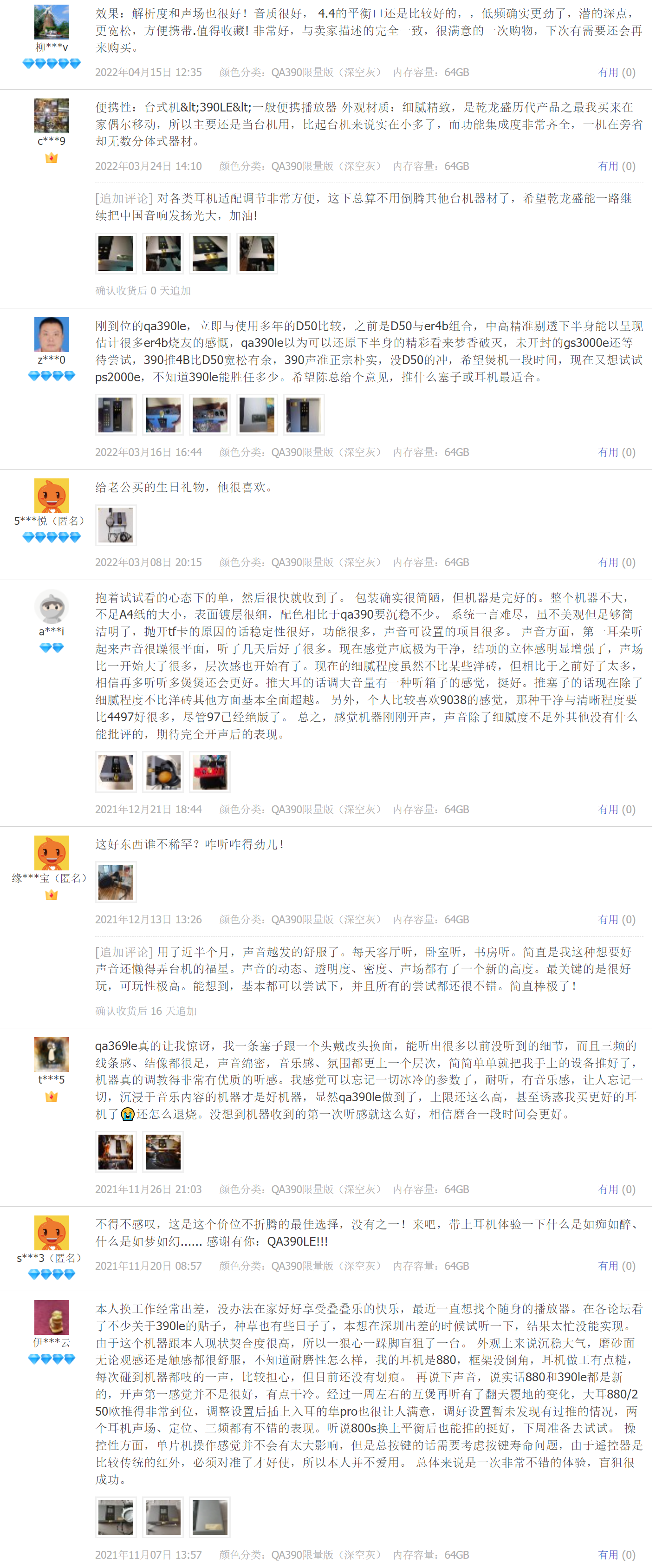 為了讓欲購(gòu)QA390限量版的愛(ài)好者們更好的了解它的表現(xiàn),小編在這里整理了部分淘寶店鋪已經(jīng)購(gòu)買(mǎi)過(guò)的用戶的評(píng)價(jià),希望對(duì)大家選購(gòu)幫助!