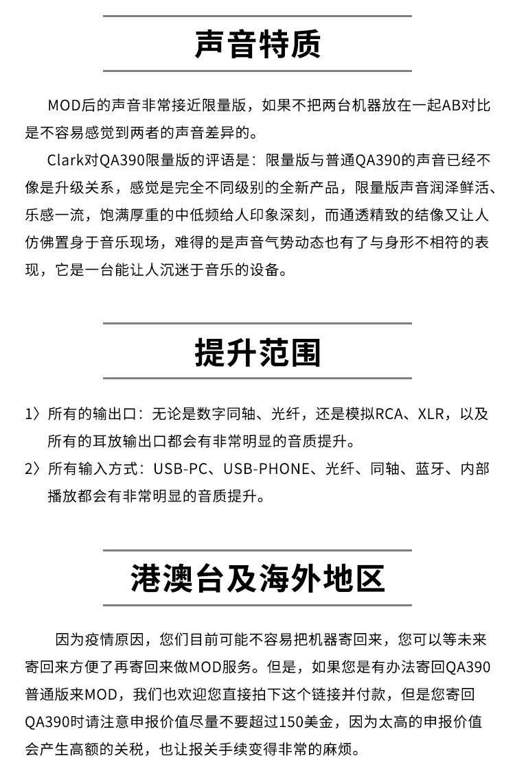 升級服務&可先試聽:QA390升級到音質(zhì)接近QA390LE限量版