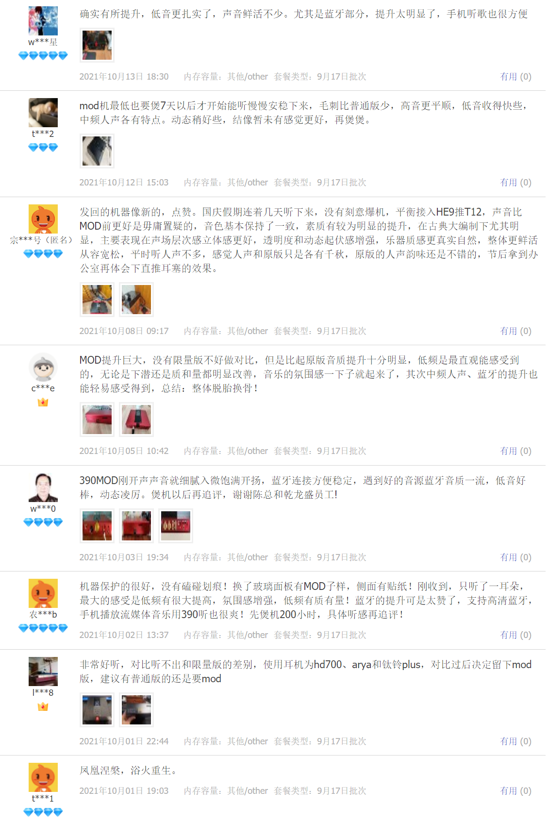 為了讓用戶更好的了解MOD版的聲音,我們截屏了淘寶交易中部分的評價,以供大家參考,后續(xù)會不斷更新!