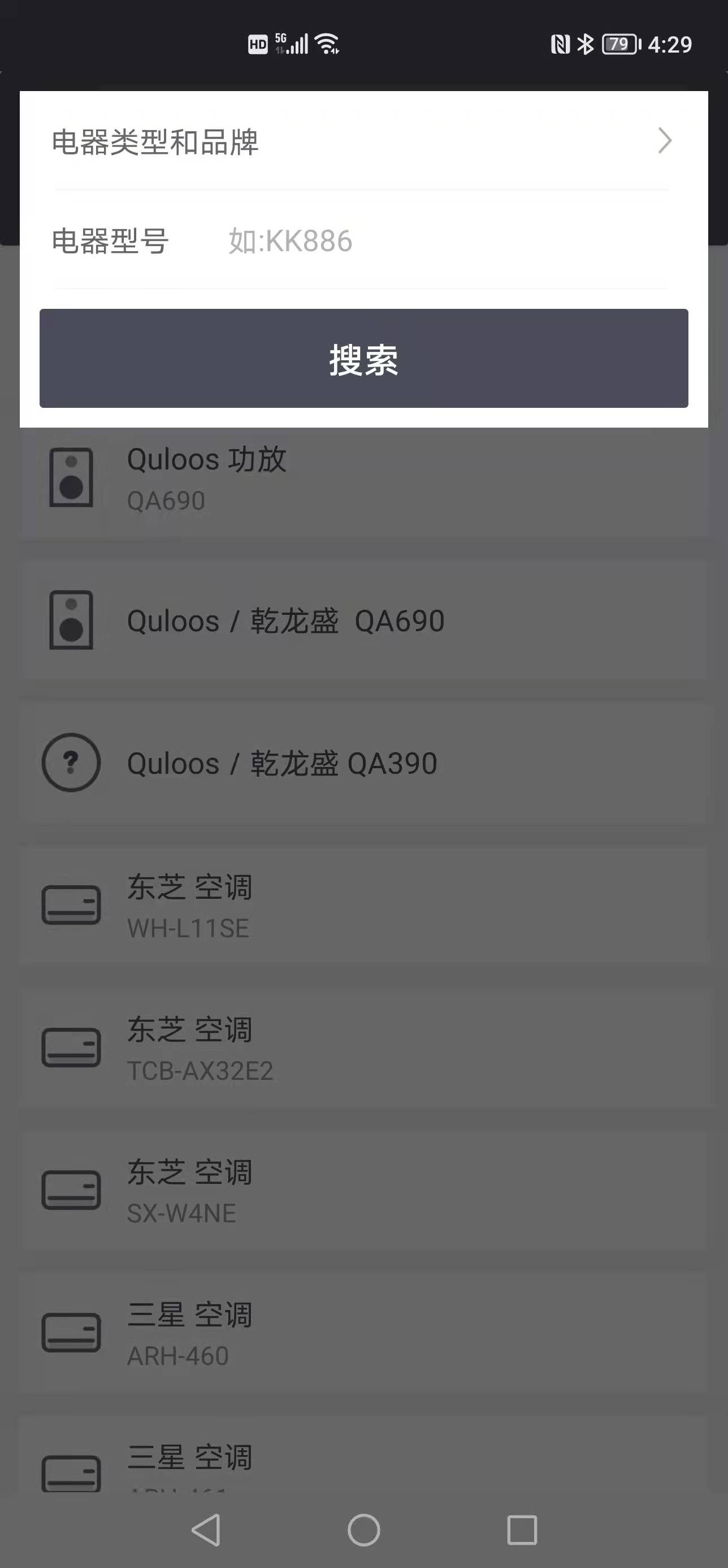用戶庫 -- 電器類型:其它,品牌手動找到“Quloos / 乾龍盛”(在Q字母下可以快速找到)