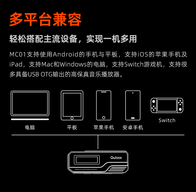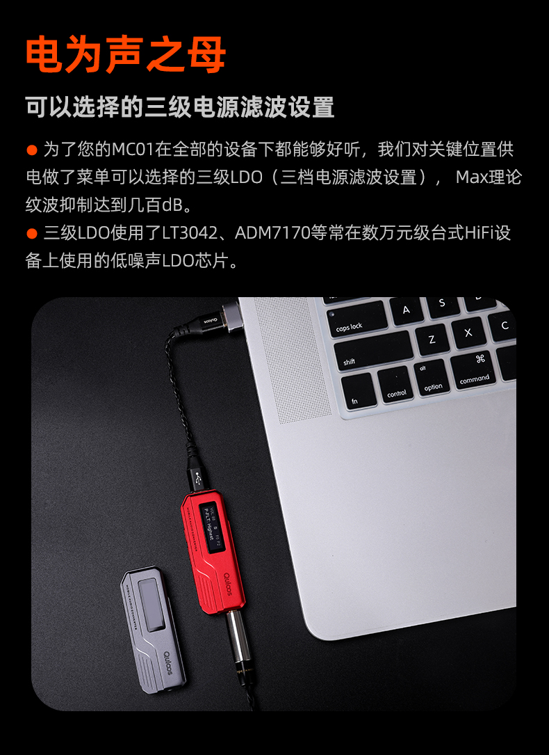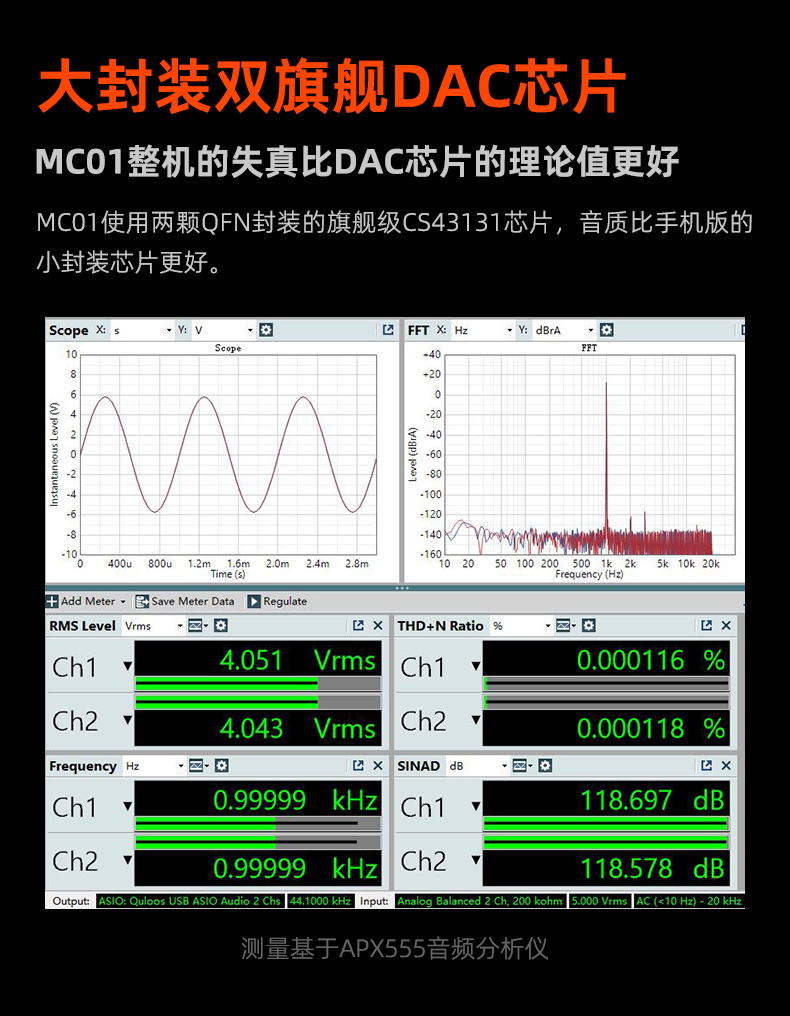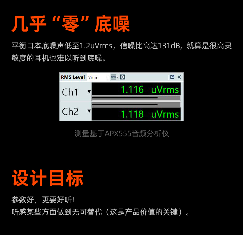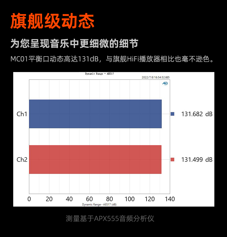 MC01平衡輸出使用兩顆大功率的獨(dú)立耳放芯片,4.4輸出高達(dá)260mW@32歐,這是比很多旗艦便攜HiFi播放器更高的輸出功率??梢赃m配更多難推的耳機(jī)。