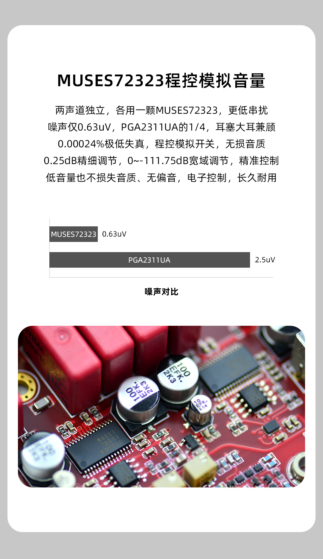 MUB5展現(xiàn)出遼闊的聲場規(guī)模與突出的縱深立體感,細節(jié)呈現(xiàn)清晰且豐富而綿密,聽感溫潤厚實。其搭載的優(yōu)質(zhì)R2R架構(gòu)賦予聲音獨特的鮮活感與真實質(zhì)感,流暢自然,現(xiàn)場還原極具沉浸氛圍。尤為難得的是扎實有力的中低頻表現(xiàn)——落地感明確,結(jié)像富有韌性(這是傳統(tǒng) Delta-Sigma 架構(gòu)難以實現(xiàn)的特質(zhì)),令人過耳難忘。