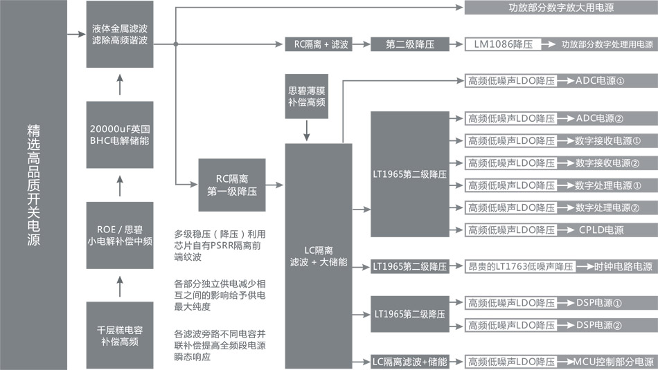 (6). 貫徹電源為聲之母的設(shè)計(jì)理念,精選大功率開關(guān)電源、20000uF英國發(fā)燒主濾波電容,以及整機(jī)占比超過70%的電源處理電路,完美實(shí)現(xiàn)極致音效。