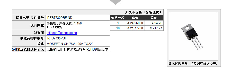 用 戶:同樣是MOS管,5毫歐內(nèi)阻的只要幾元,你這顆2.6毫歐的IRFB7730要幾十元每顆,值嗎?
