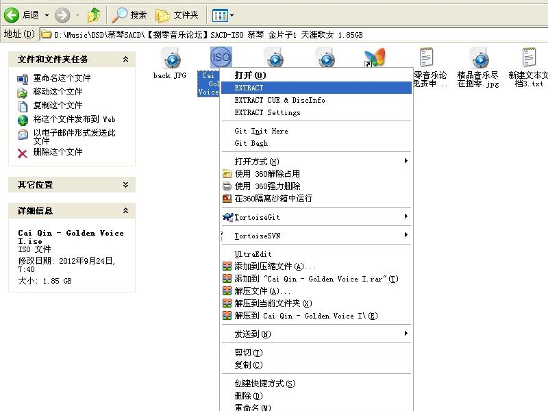 5. 右擊SACD ISO鏡像文件, 選擇EXTRACT;