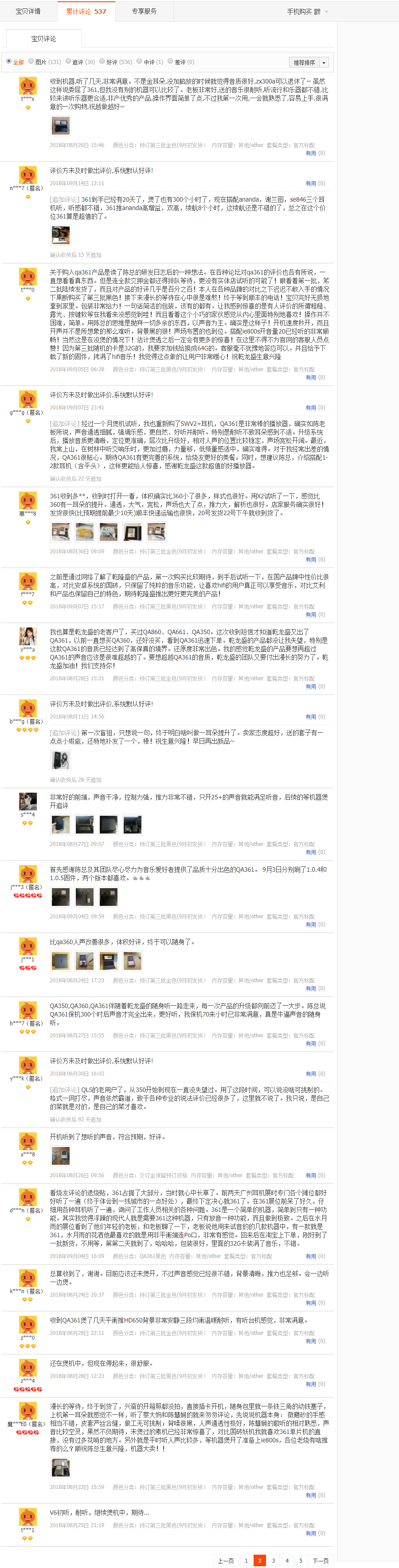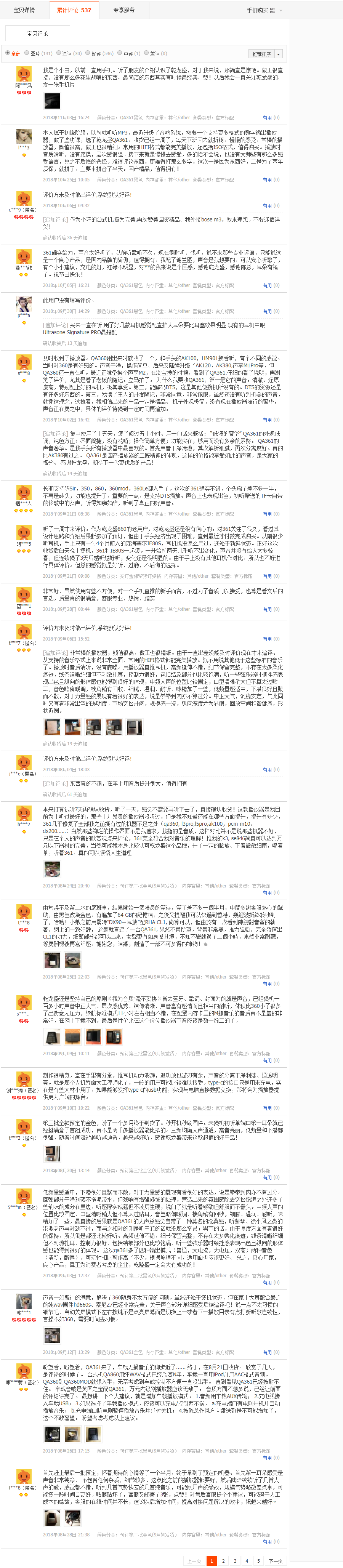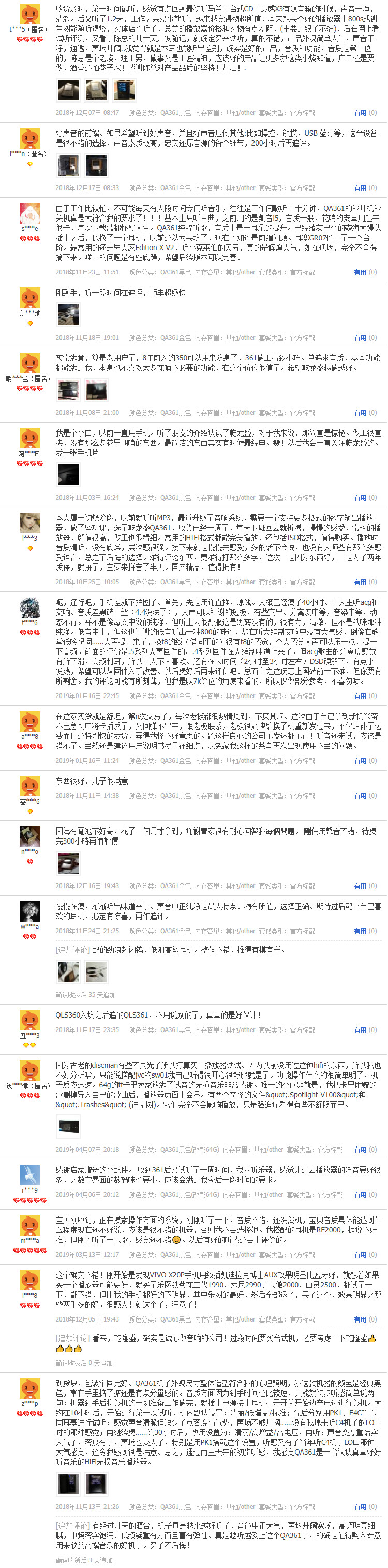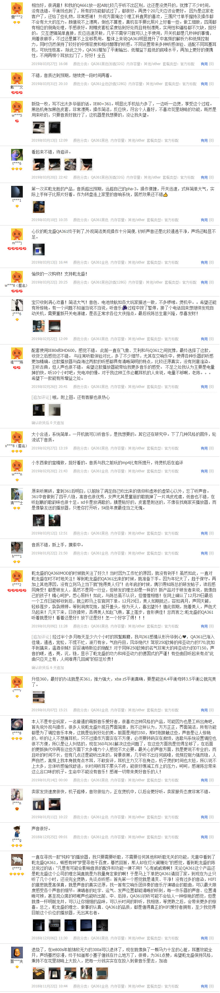 為了使欲購QA361的愛好者們更好的了解QA361 HIFI播放器,小編在這里整理了部分淘寶店鋪已經(jīng)購買過的用戶的評價(jià),希望對大家選購幫助!