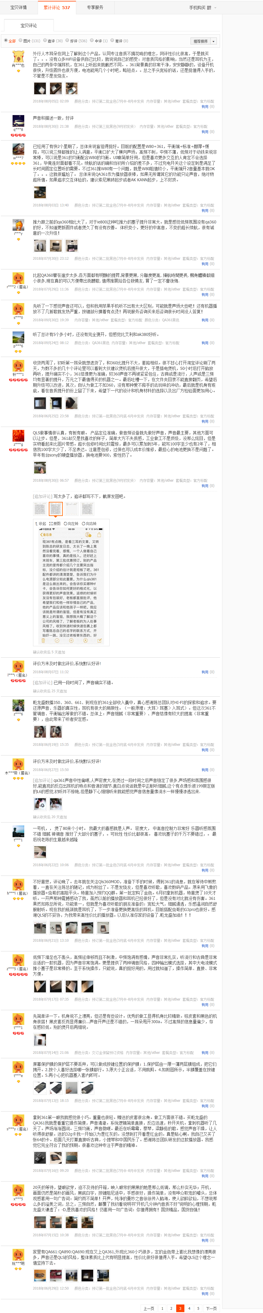 整理QA361用戶的一些評測, 后續(xù)不斷更新
